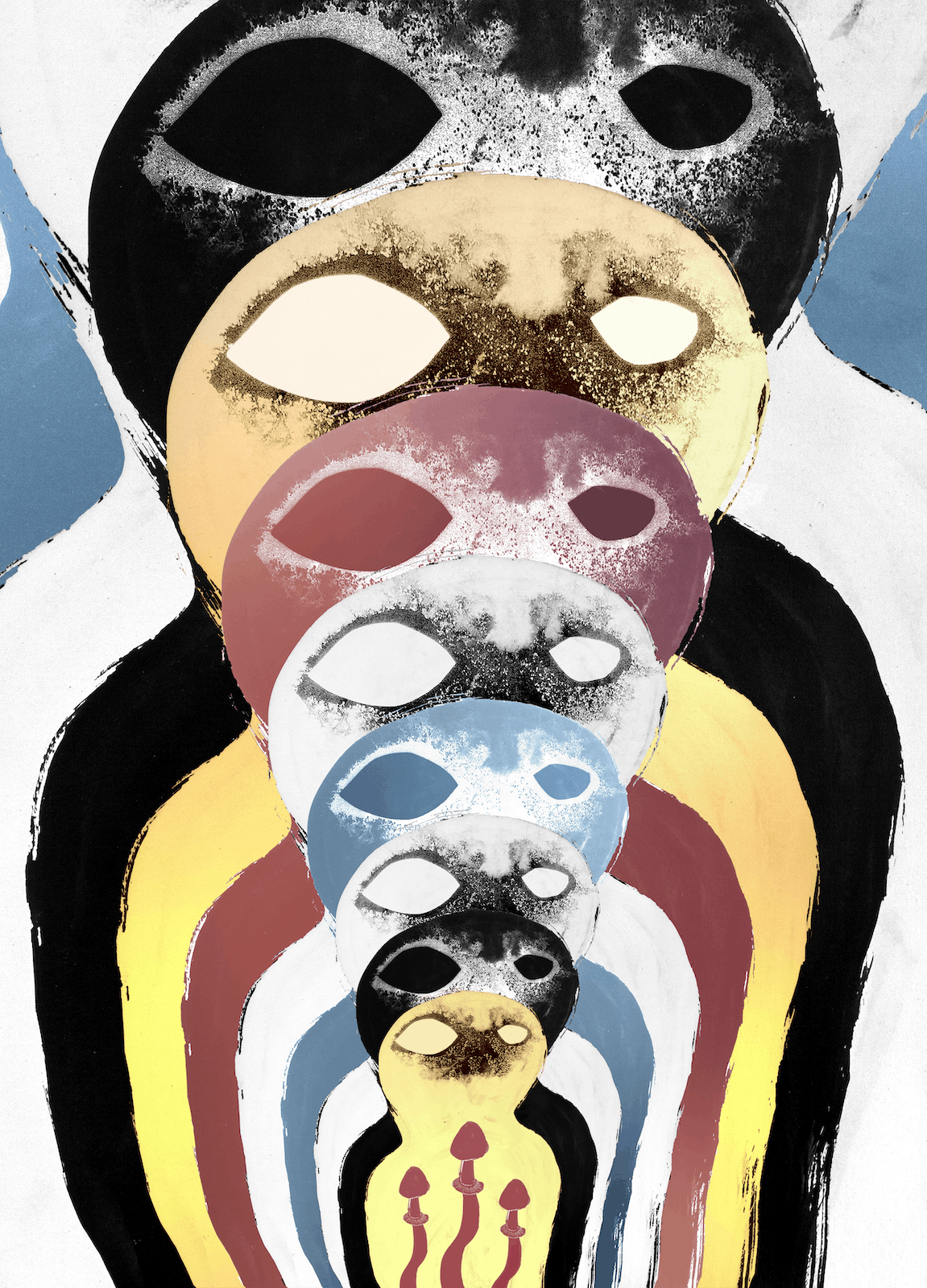 This piece is inspired by psylocibin. At one point my inner world was a total mess and I started experimenting with high dosages of shrooms. It helped me a bit to process my situation and to resolve some of the battles I was fighting.